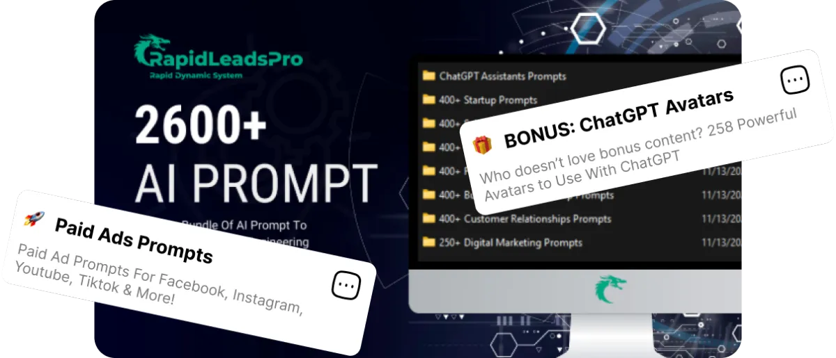 Unlock the full potential of AI in your business operations with our extensive collection of ChatGPT prompts. This bundle offers over 2,600+ meticulously crafted prompts across various domains, empowering you to generate creative ideas, automate tasks, and enhance productivity seamlessly.